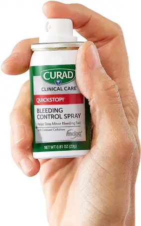 Curad® Quickstop!® Спрей помогает быстро остановить незначительное кровотечение. Распылите на царапину. Curad Quickstop Spray содержит M-doc Active, натуральный порошок окисленной целлюлозы, который быстро впитывает кровь из мелких царапин и порезов, образуя на ране мягкий гелеобразный слой и помогая быстро остановить кровотечение. Распыляйте под любым углом. Окисленная целлюлоза природного происхождения. Нам доверяют больницы более 40 лет. Подробности на сайте: www.curad.com